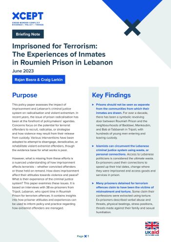 This Briefing Note assesses the impact of imprisonment and Lebanon’s criminal justice system on radicalisation and violent extremism. Based on interviews with ex-prisoners who spent time in Roumieh Prison in Lebanon for terrorism offences, this brief offers insights into how prisoner attitudes and experiences can be used to inform the management of extremist offenders.