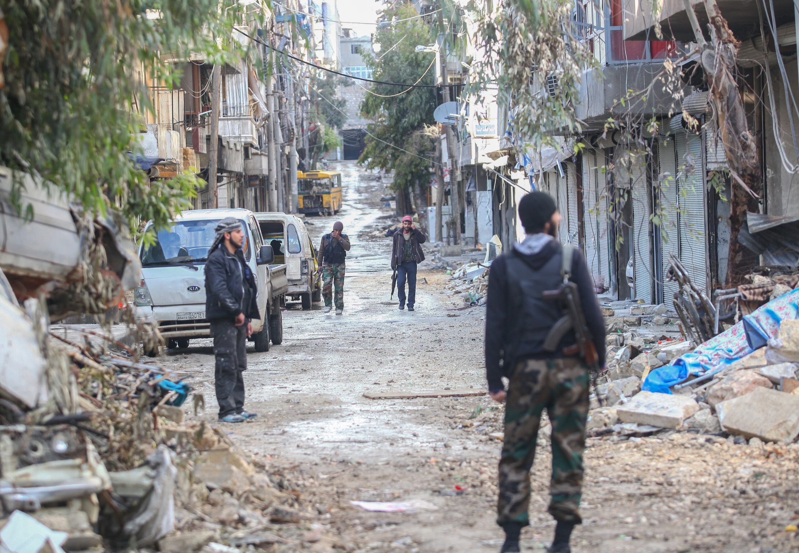 Armed soldiers among the ruined buildings of Aleppo, Syria (February 15, 2012). Credit: Mehmet Ali Poyraz / Shutterstock.com