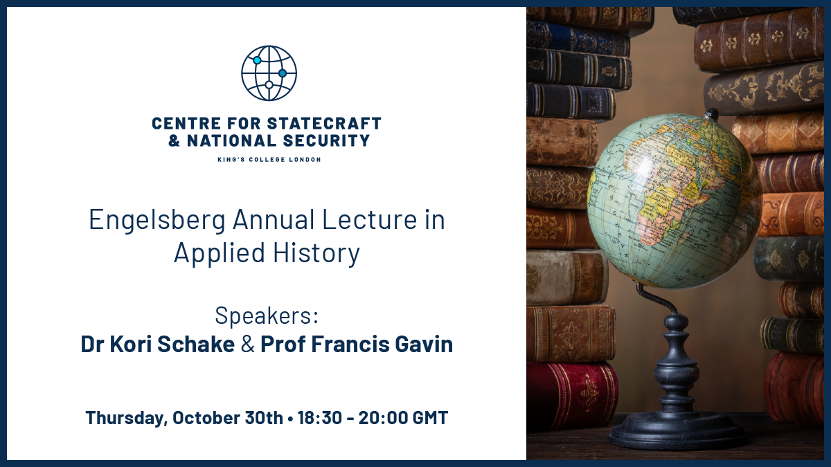 The Centre for Statecraft & National Security will host its Annual Lecture in Applied History. This year, we are honoured to host Dr Kori Schake and Professor Francis Gavin, who will be speaking about their recent books as well as their approach to applied history.