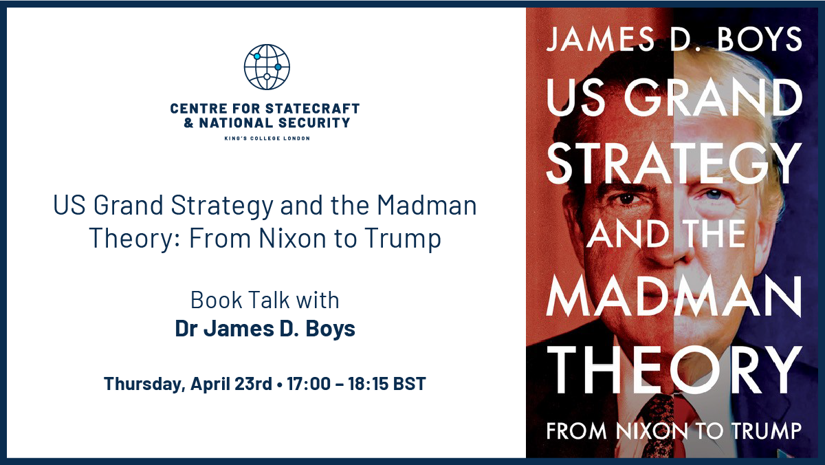 The Centre for Statecraft & National Security is excited to host James D. Boys for a talk about his new book, US Grand Strategy and the Madman Theory: From Nixon to Trump.